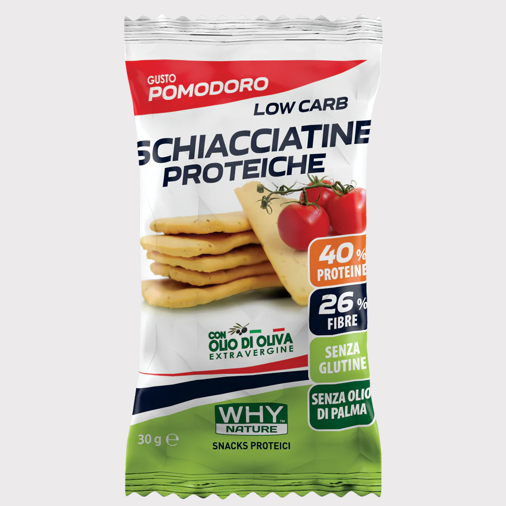 Le schiacciatine proteiche WHYNature sono un alimento con il 40% di proteine, senza olio di palma e senza glutine, ad alto contenuto di fibre.