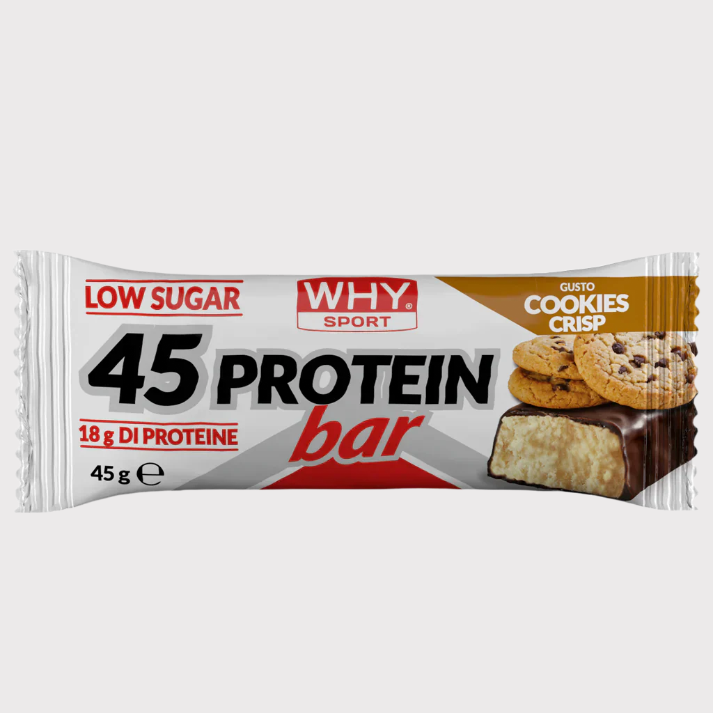 45 Protein Bar è una barretta ad alto contenuto proteico e un basso tenore di zuccheri. Grazie alla sua composizione, che include il 40% di proteine di alta qualità provenienti da caseinato di calcio, proteine concentrate del siero del latte e proteine isolate della soia, è particolarmente indicata per coloro che desiderano aumentare o mantenere la massa muscolare durante il periodo di definizione. Gustosa e croccante, rappresenta una scelta ideale come spuntino pomeridiano per soddisfare la fame e supportare gli obiettivi di allenamento.