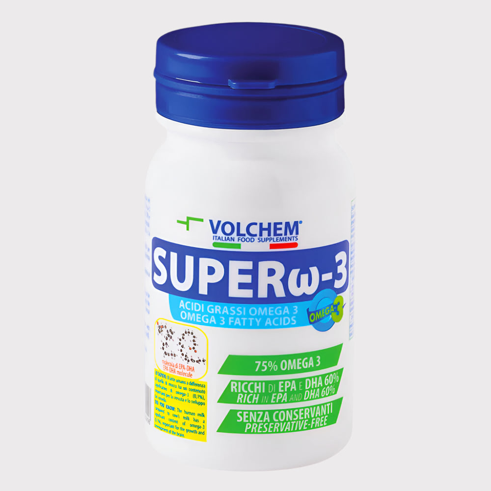Super Omega 3 è un integratore di acidi grassi LCP omega 3 con una purezza al 75%, notevolmente ricco di EPA e DHA (60%), nel rapporto raccomandato dal Ministero della Salute, con maggior concentrazione di EPA rispetto a DHA. Gli omega 3 sono nutrienti essenziali non sintetizzabili dal corpo umano e devono essere introdotti tramite la dieta.